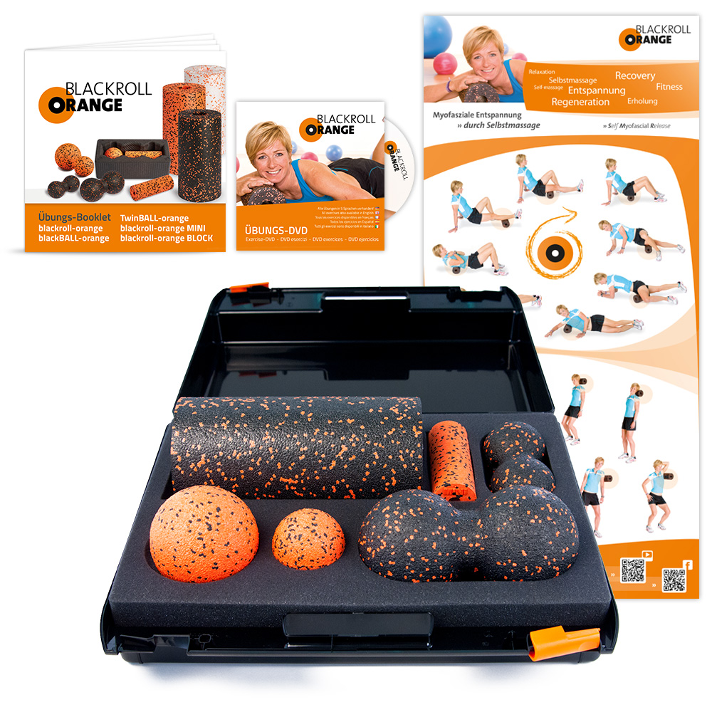 Das SMR-SET STANDARD besteht aus einer blackRoll-orange (einer Massagerolle), blackBalls-orange    (Massagebällen)    und    den    twinBall-orange    (Twin- Massagebällen). Die Rollen und Bälle sind aus einem speziellen Kunststoffgemisch, thermoplastischem Polymer, gefertigt und wiegen fast nichts. Und die Möglichkeiten des Einsatzes sind enorm.